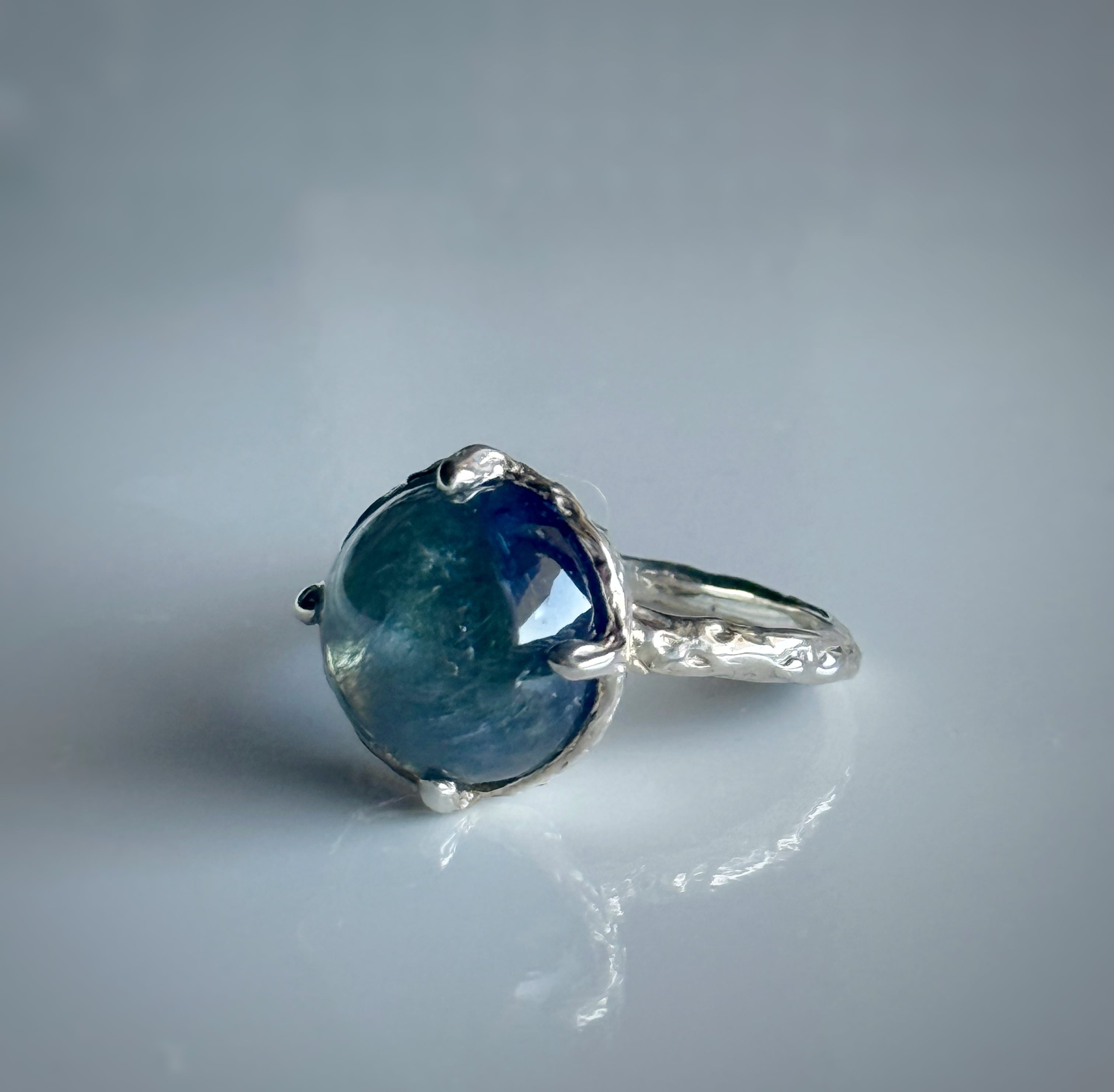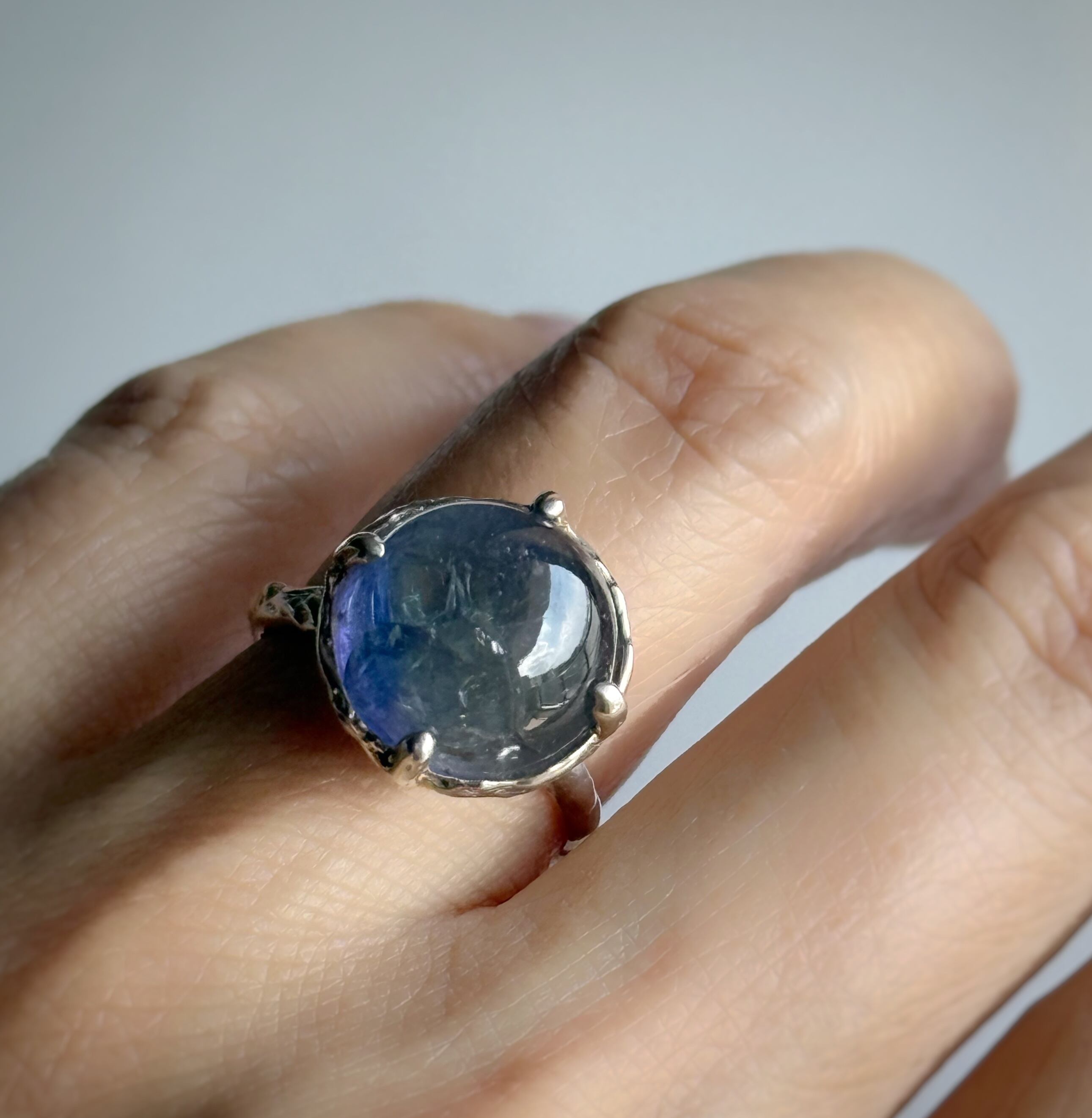 カボションカットの大粒タンザナイトを、silver925で一点もののリングにお仕立てしました。
