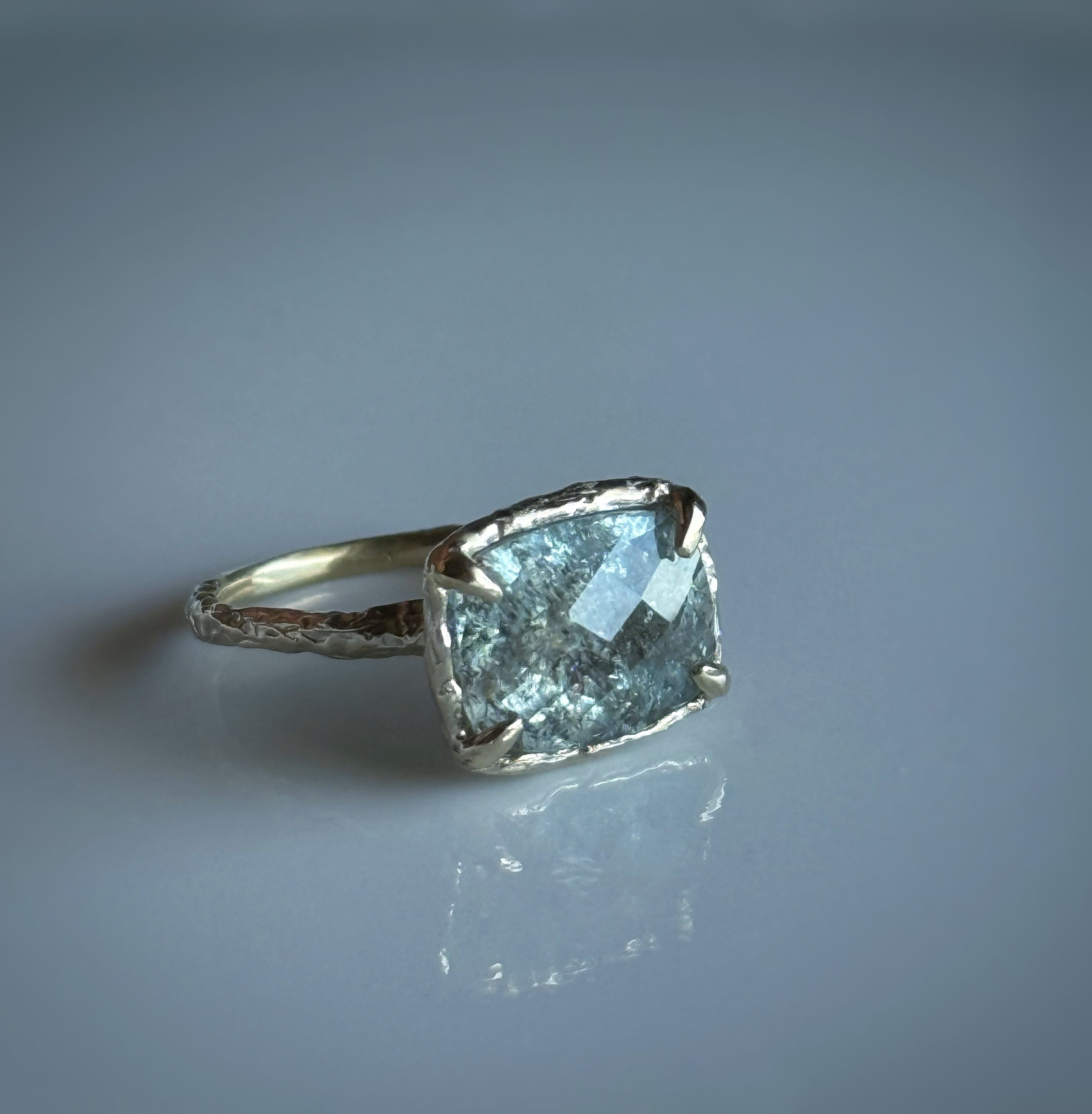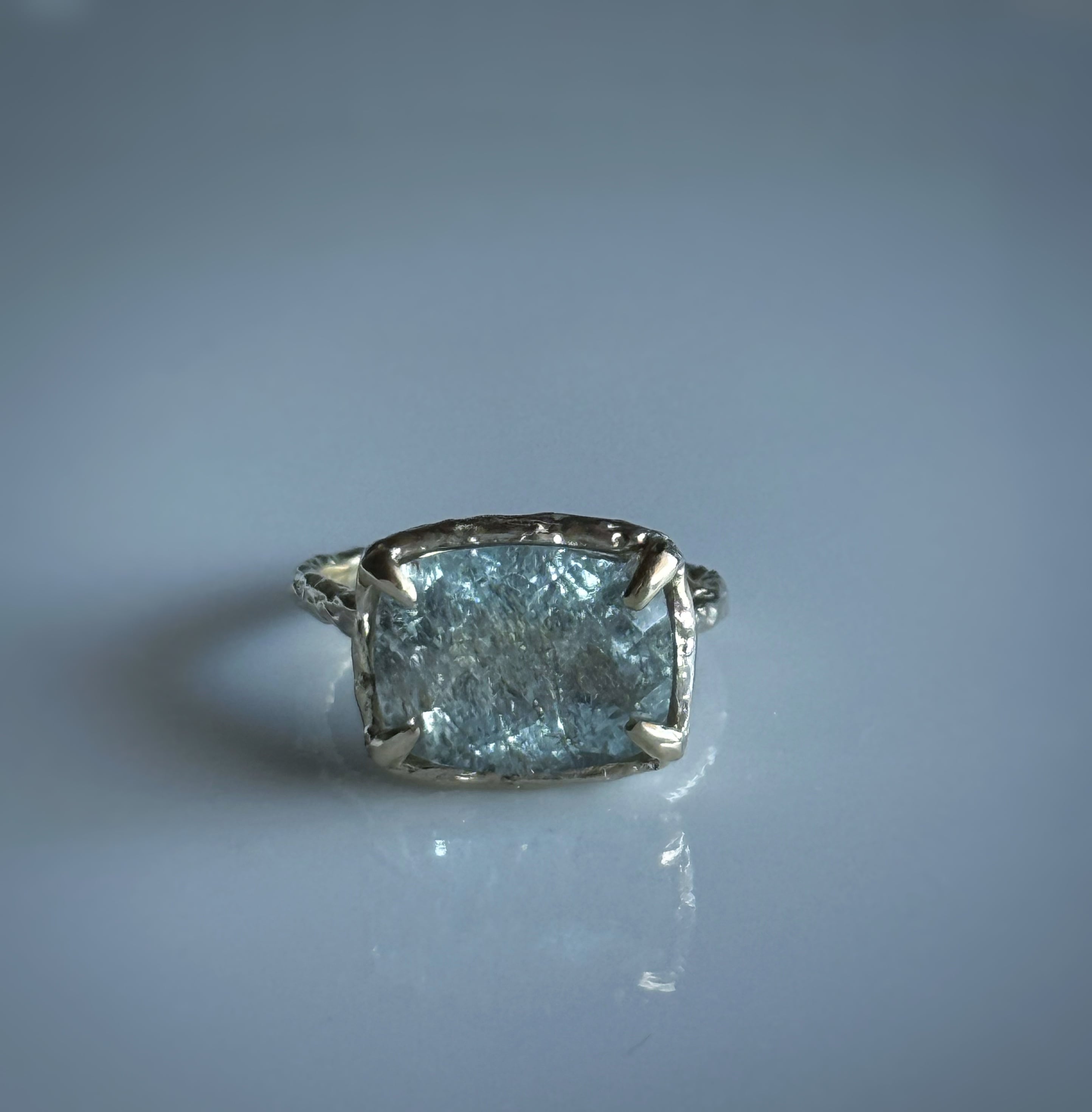 青く澄んだ爽やかさの中に、どこか落ち着きを感じられる唯一無二のリングになりました。