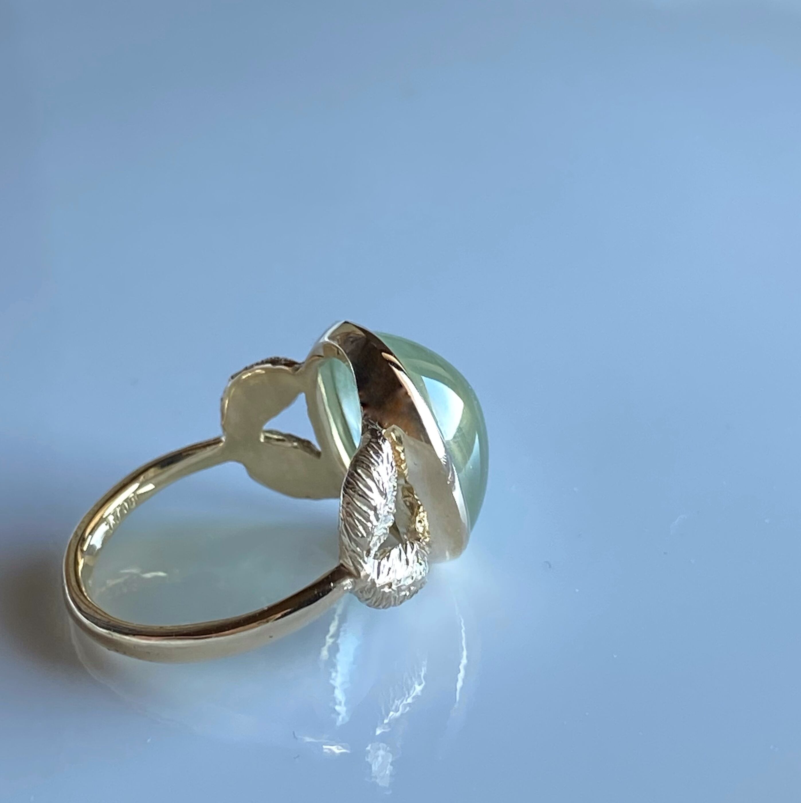 シラーが見られるカボションカットの大きめプレナイトのk10 リングです。
