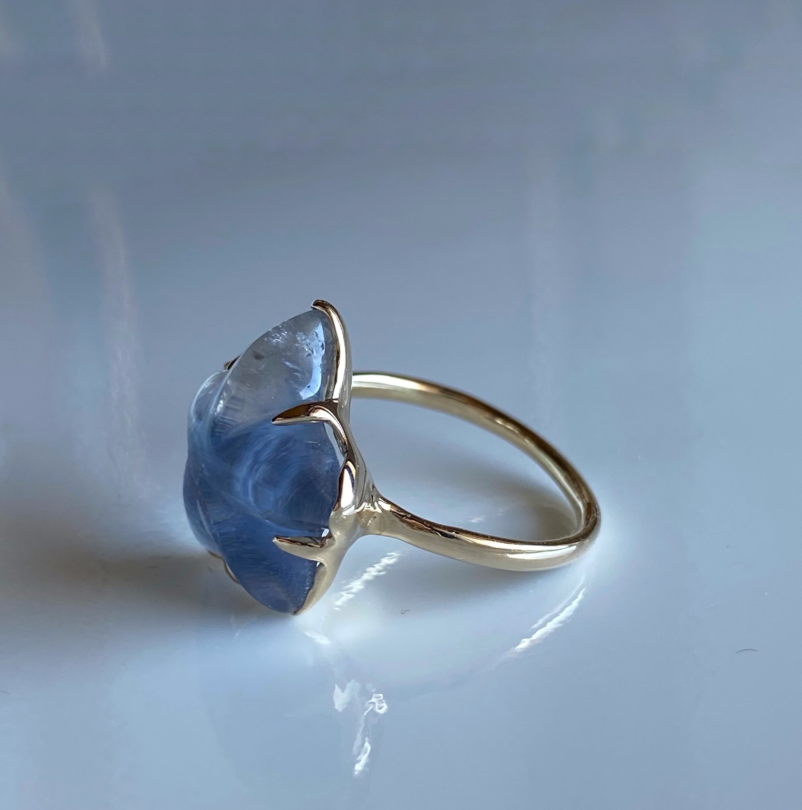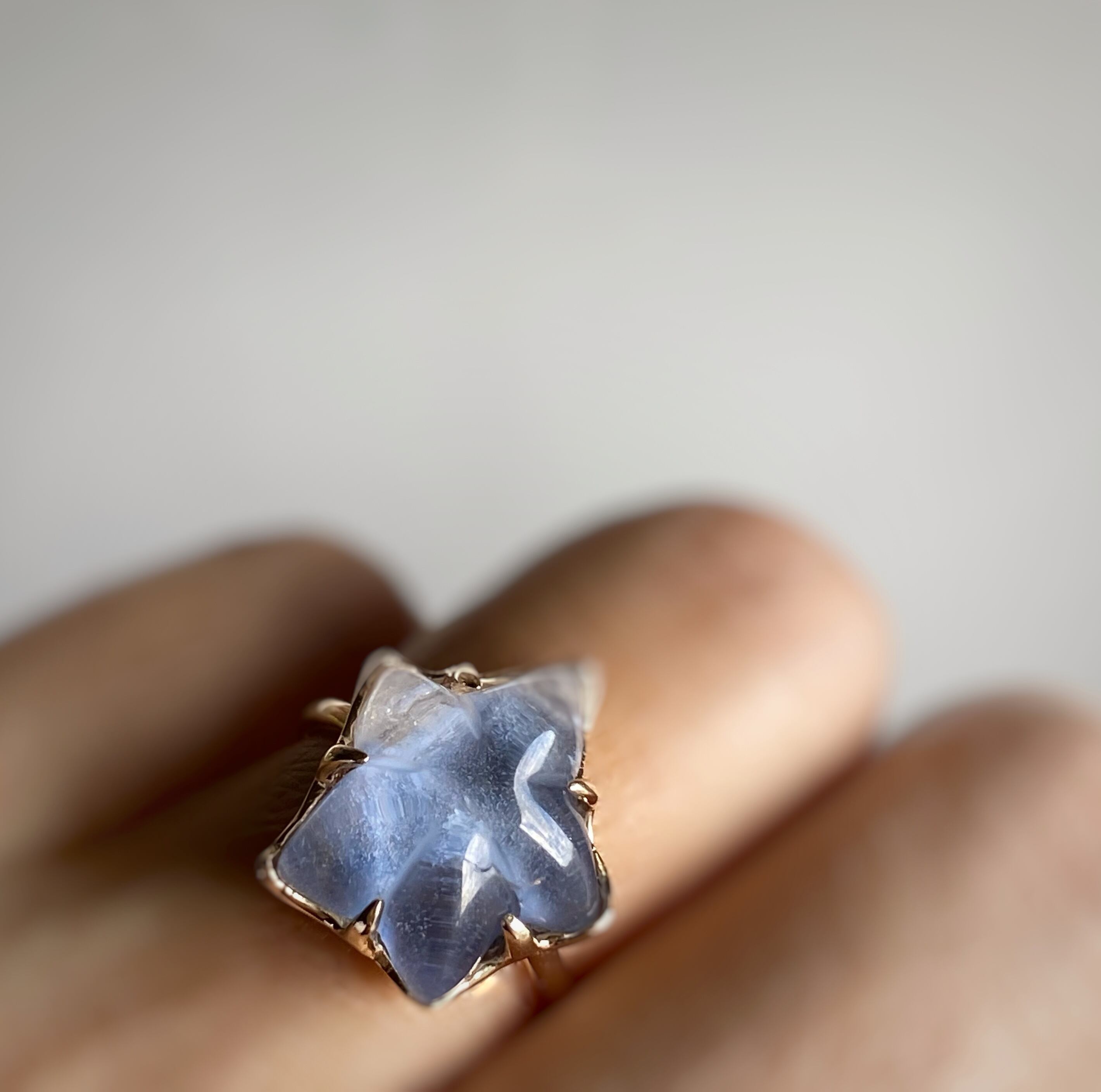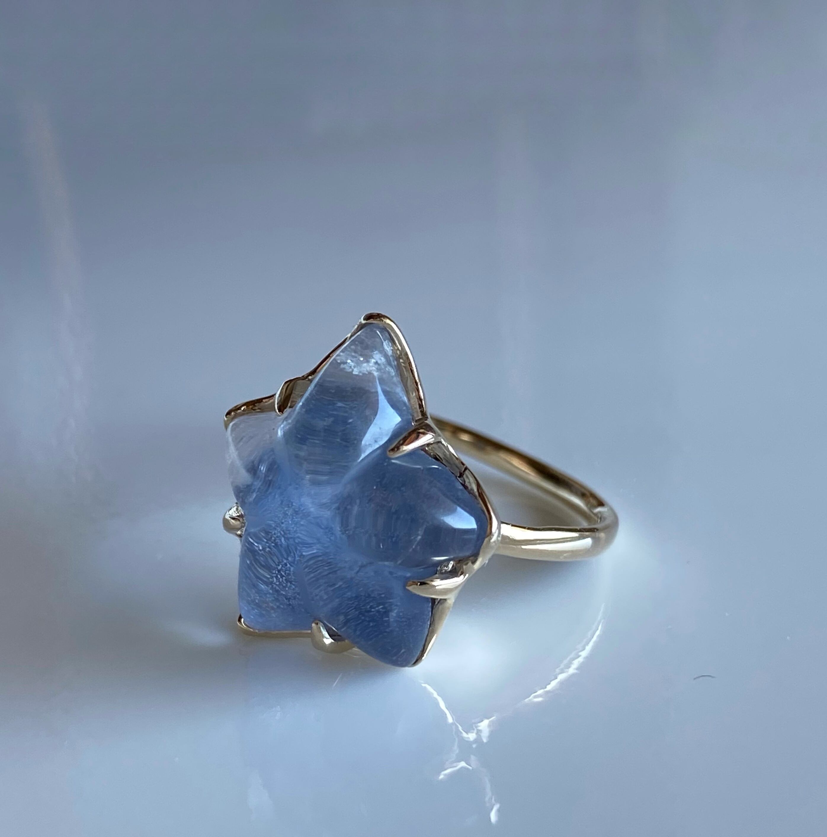 星型フリーフォームのデュモルチェライトインクォーツに合わせて、k10で一点ものリングにお仕立てしました。