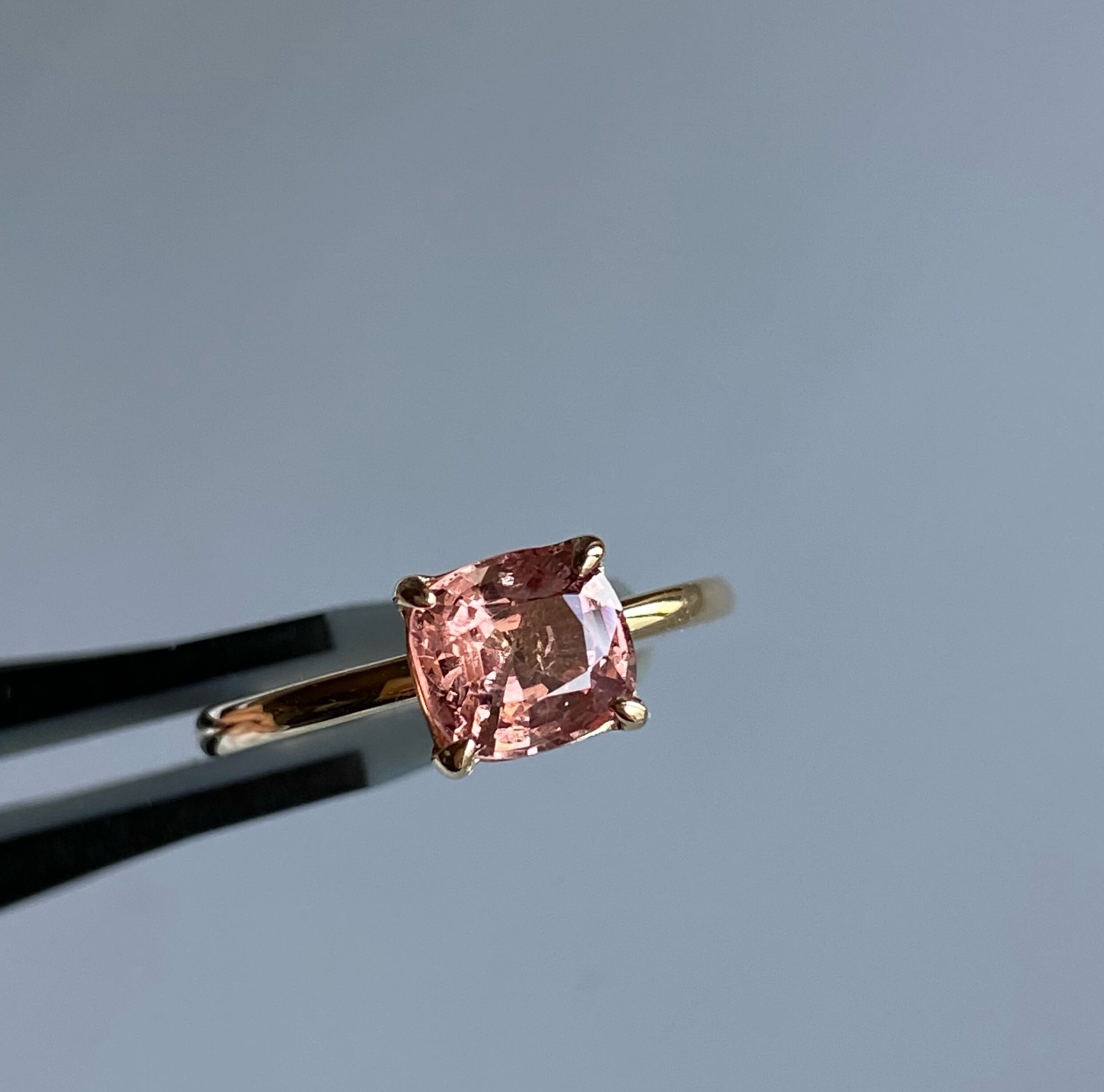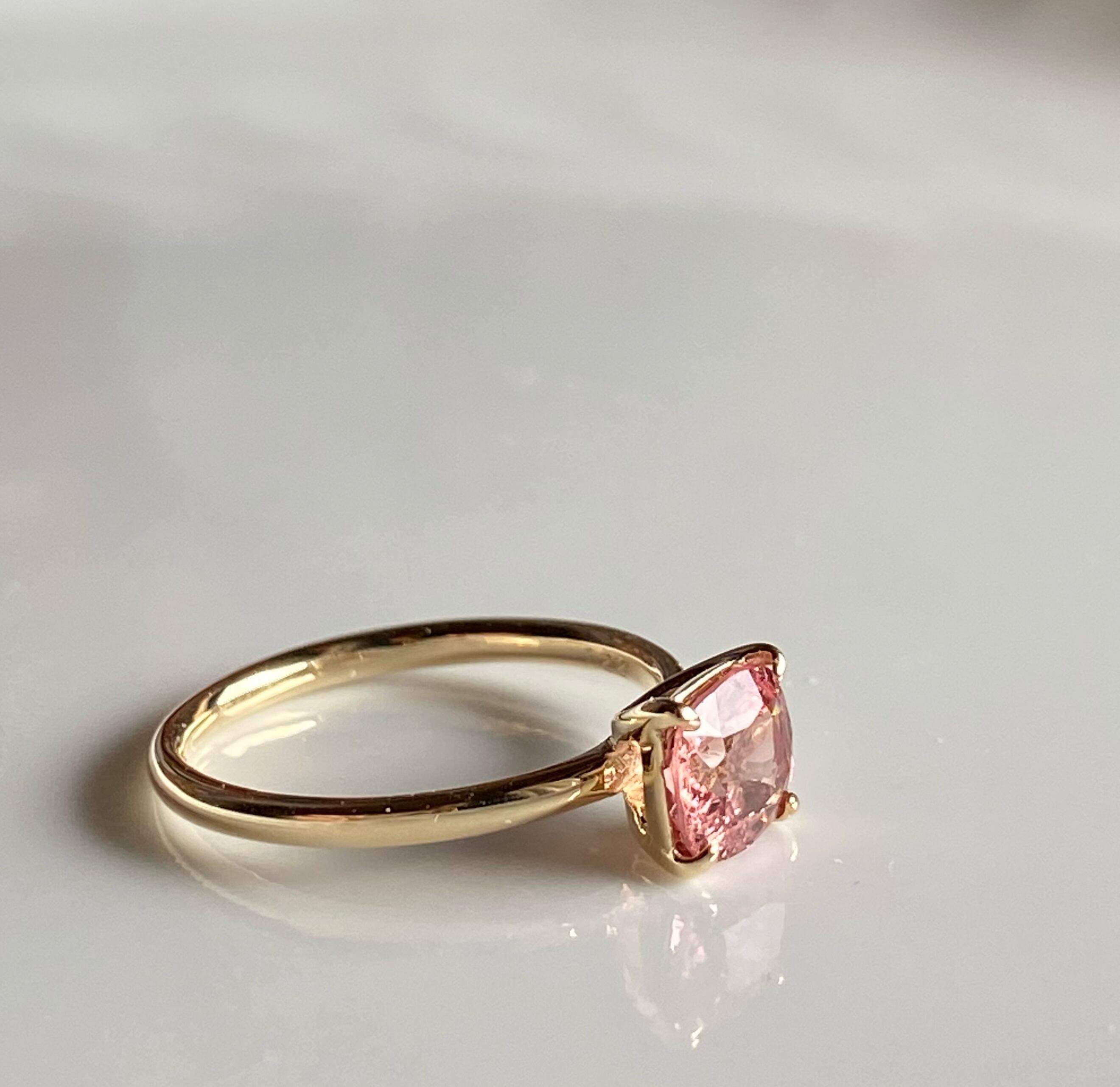ファセットカットが施されたオレンジピンクカラーのスピネルをk10でリングにお仕立てしました。