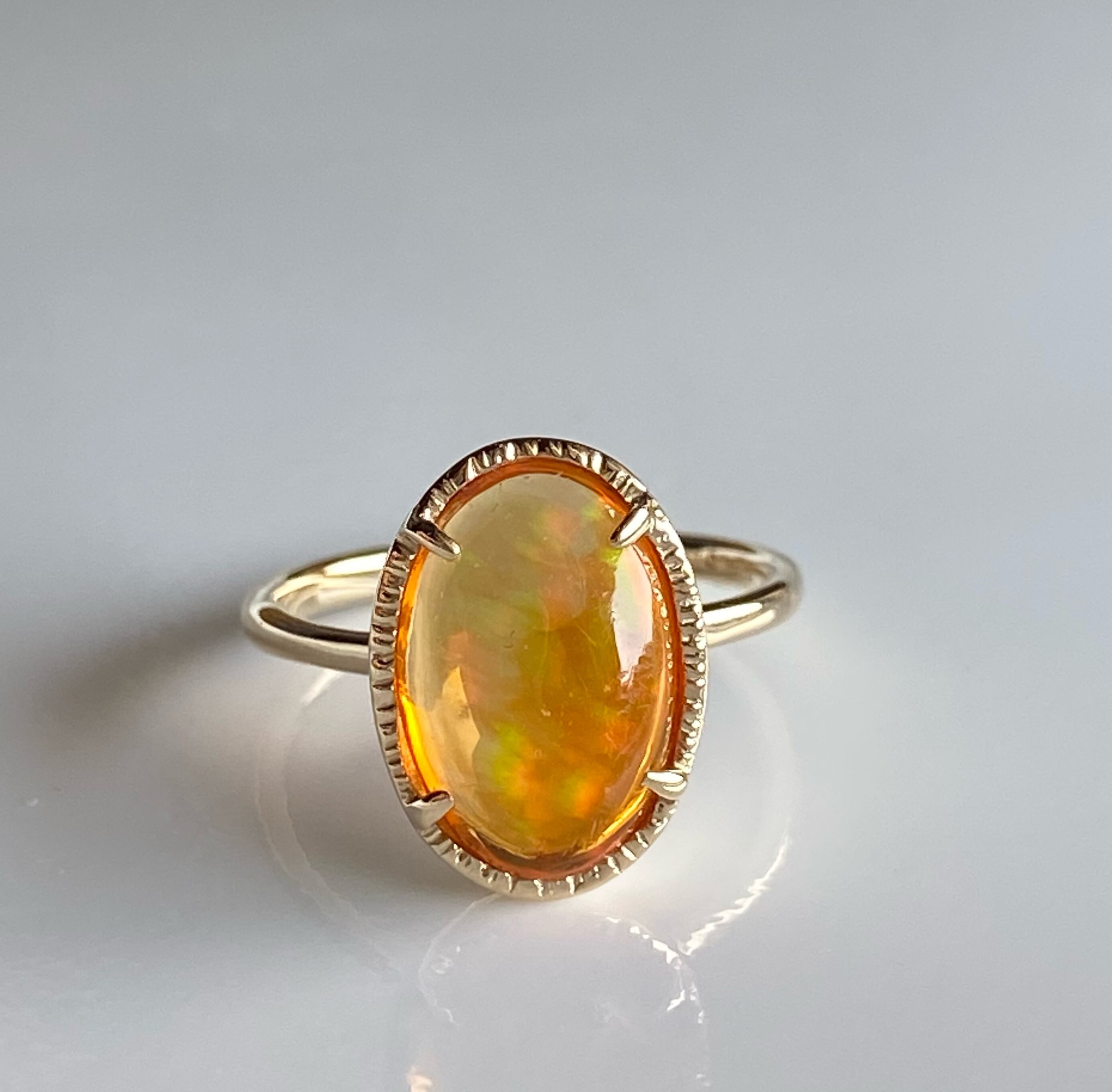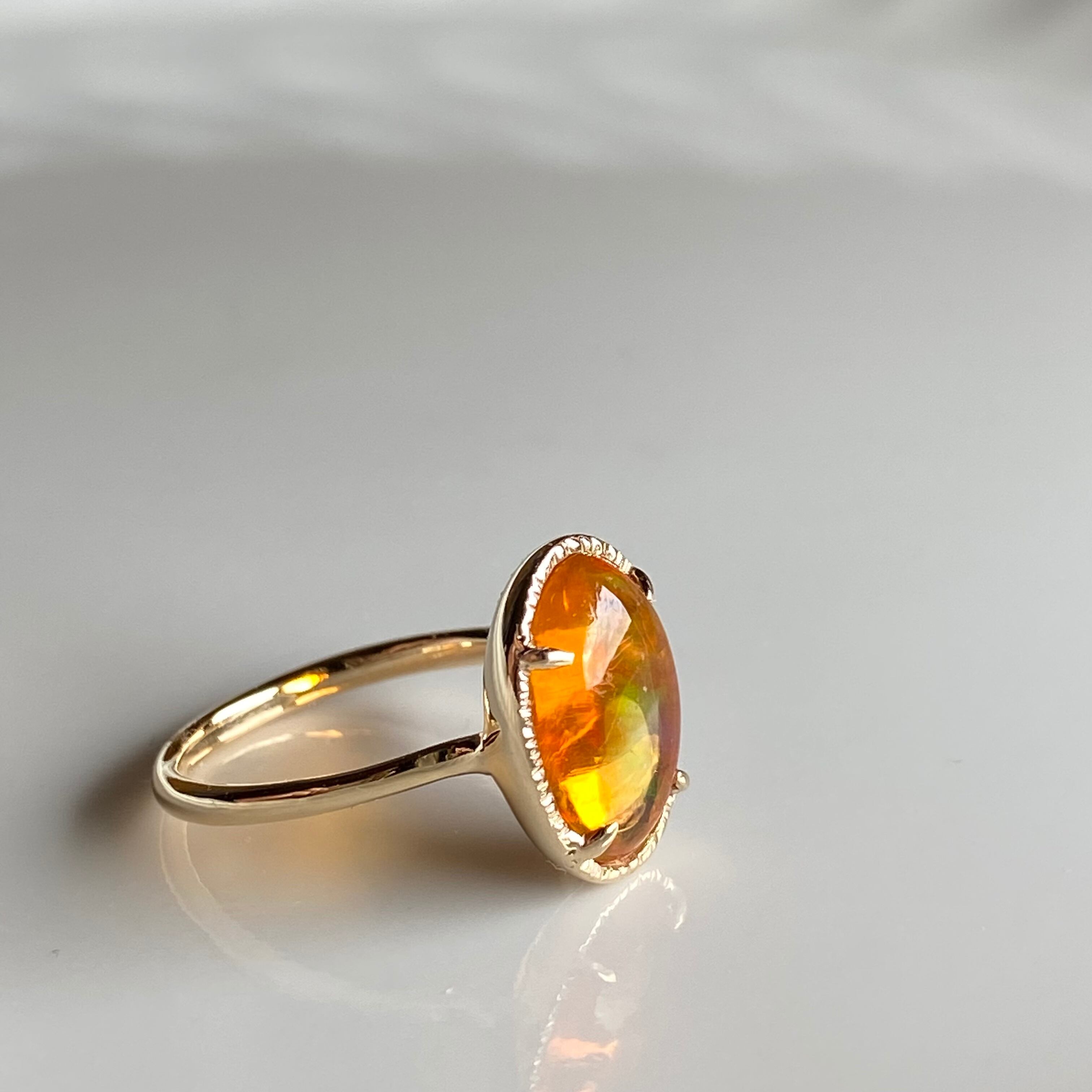 カボションカットのオパールを一点もののリングにお仕立てしました。