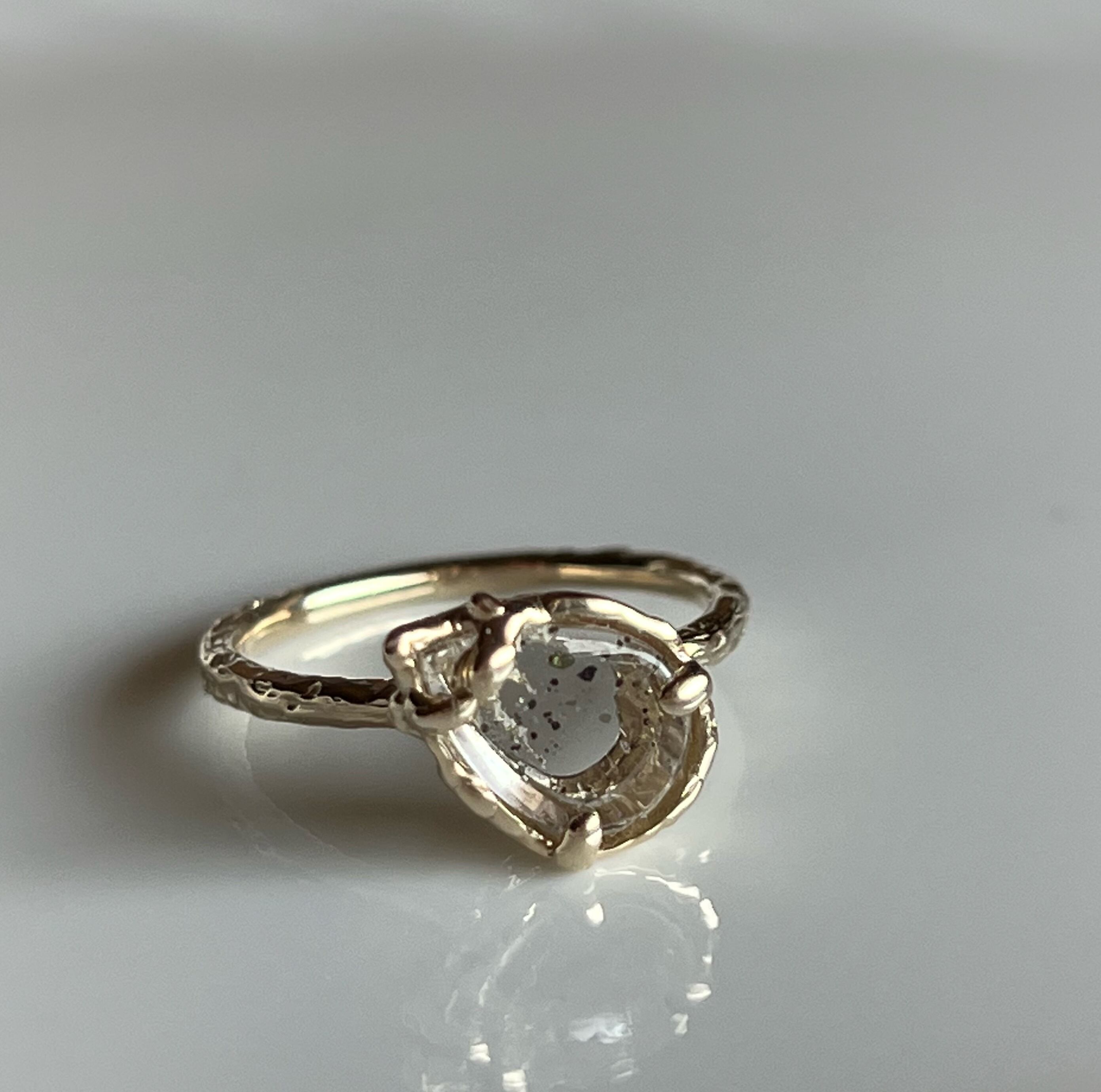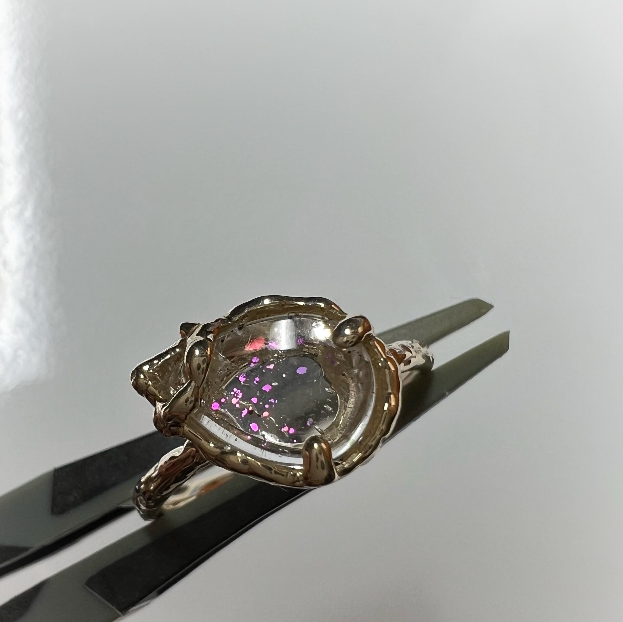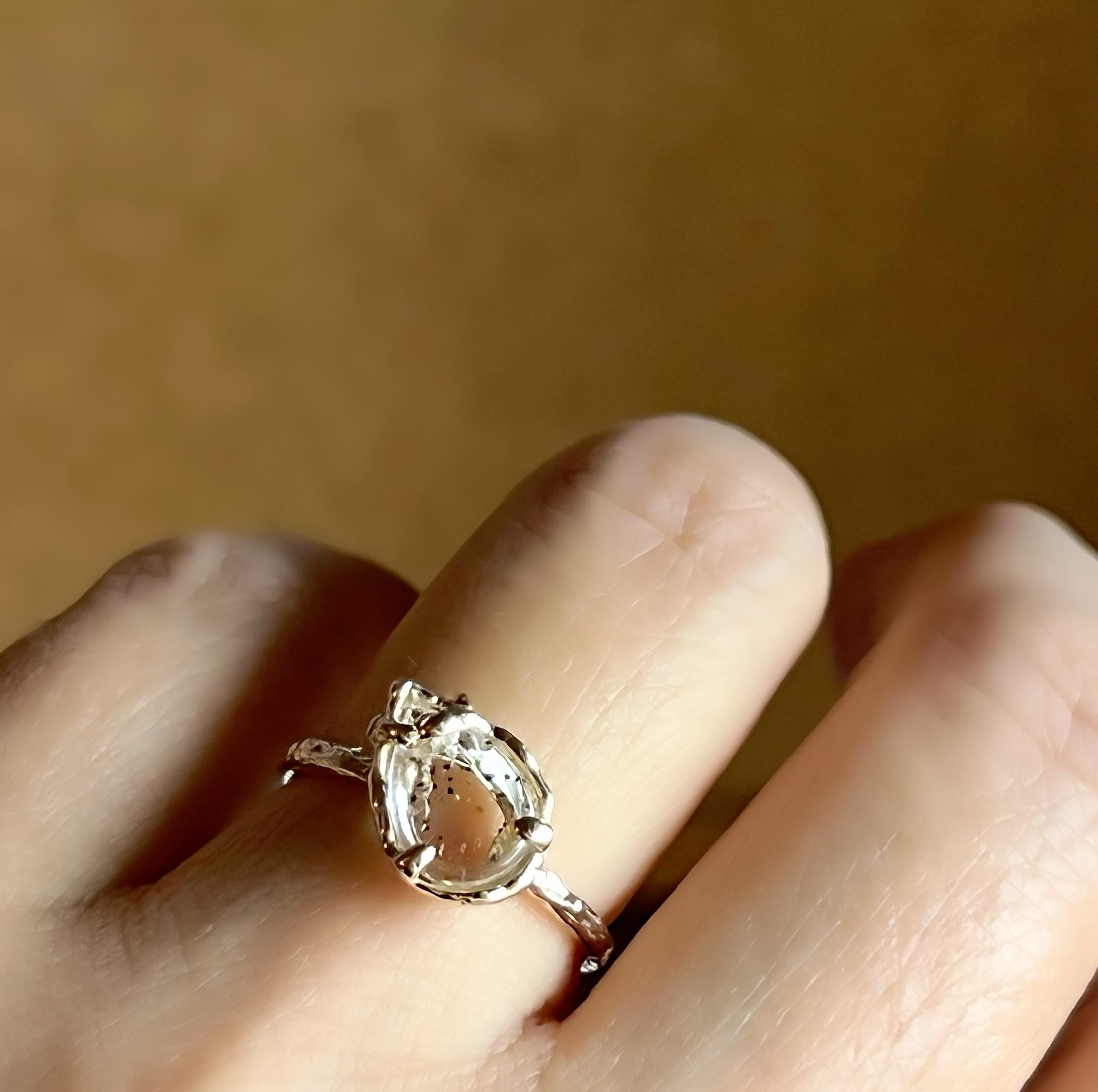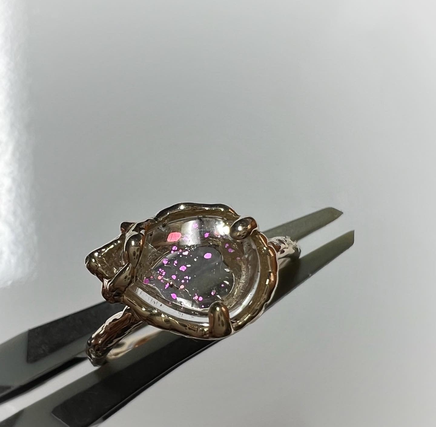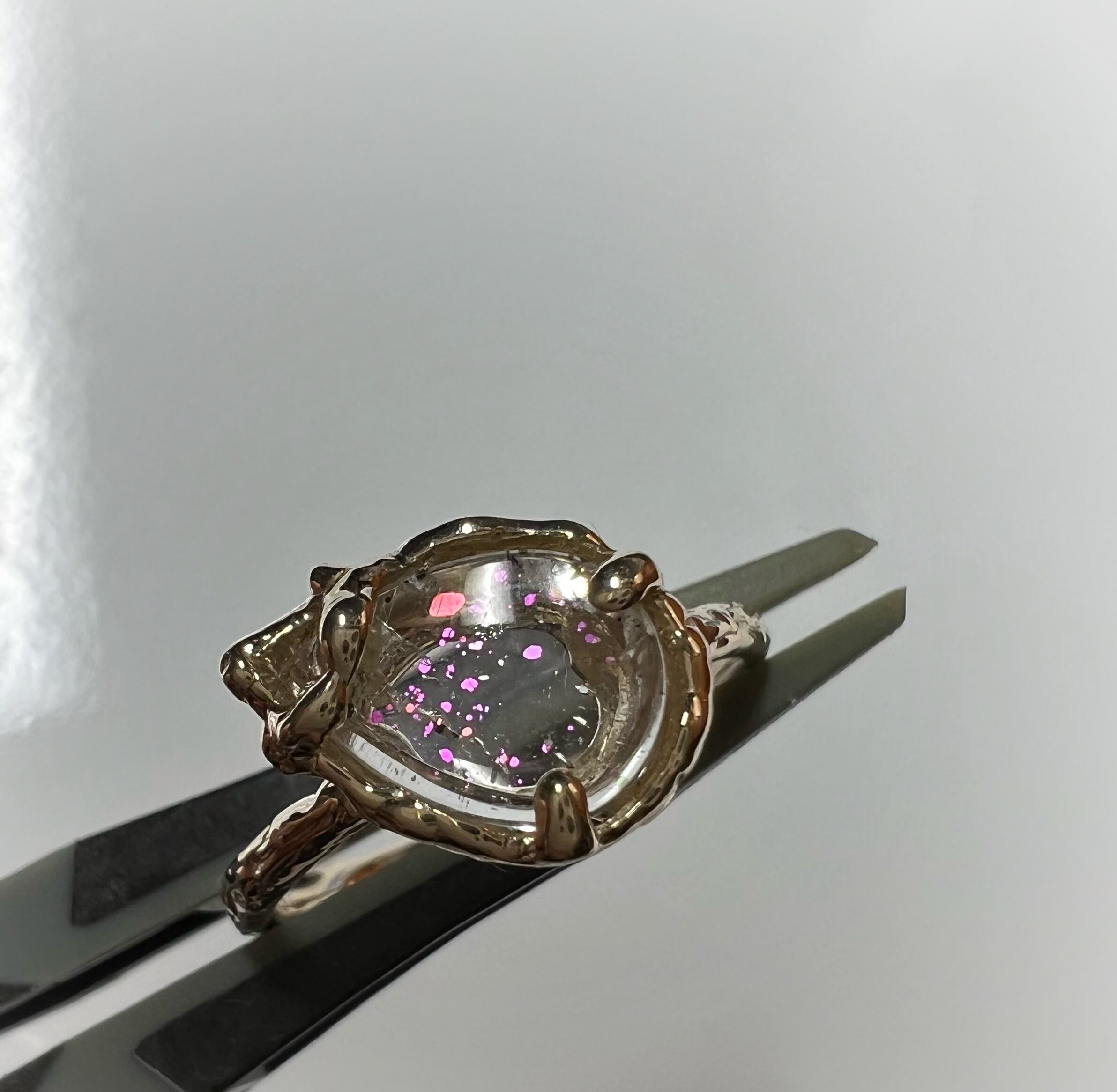 ブラジル産のピンクファイヤークォーツをk10で一点ものリングにお仕立てしました。