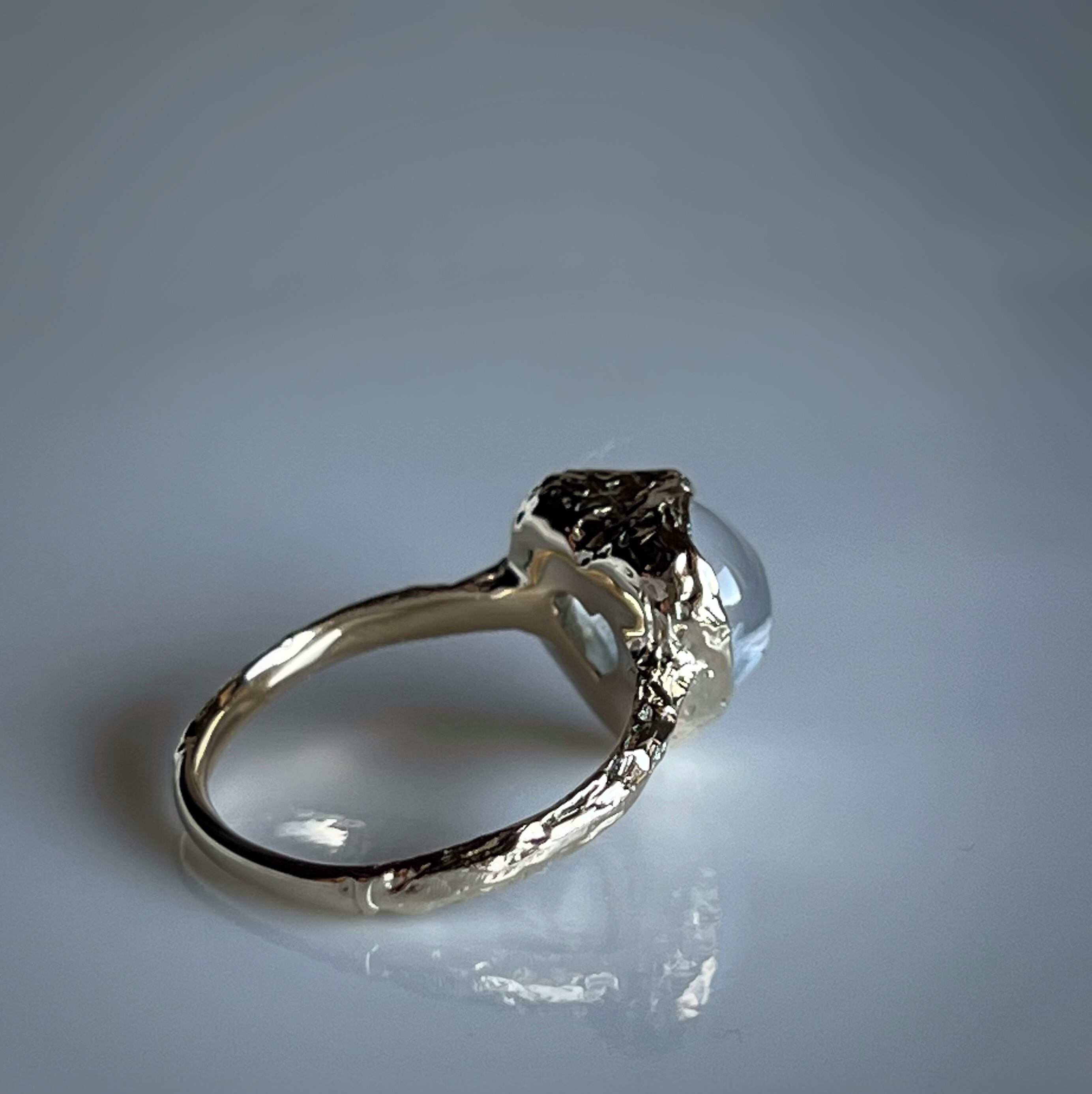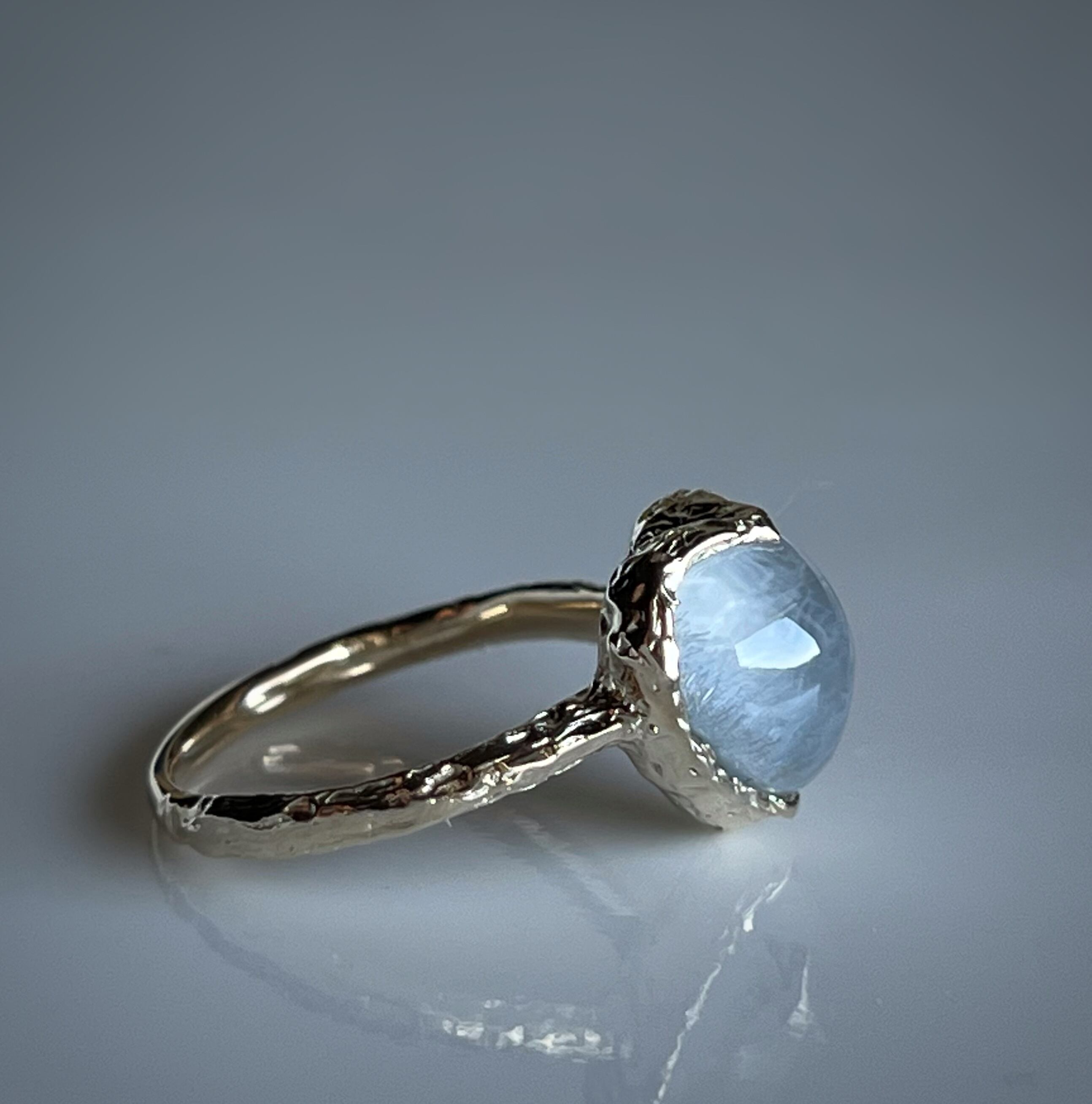 ハートシェイプのカボションカットのデュモルチェライトインクォーツをk10一点ものリングにお仕立てしました。