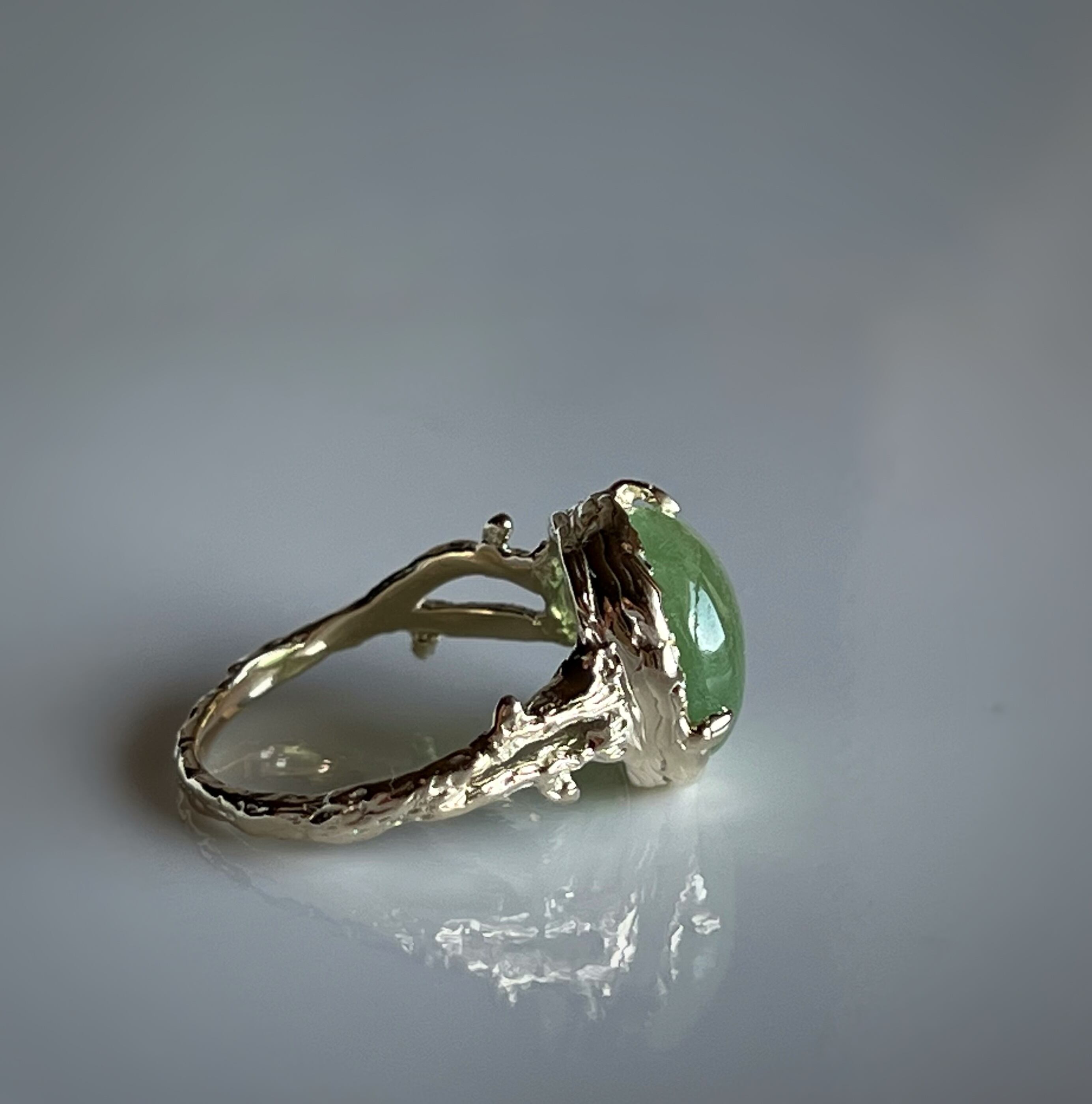 カボションカットグロッシュラーガーネットをk10一点ものリングにお仕立てしました。