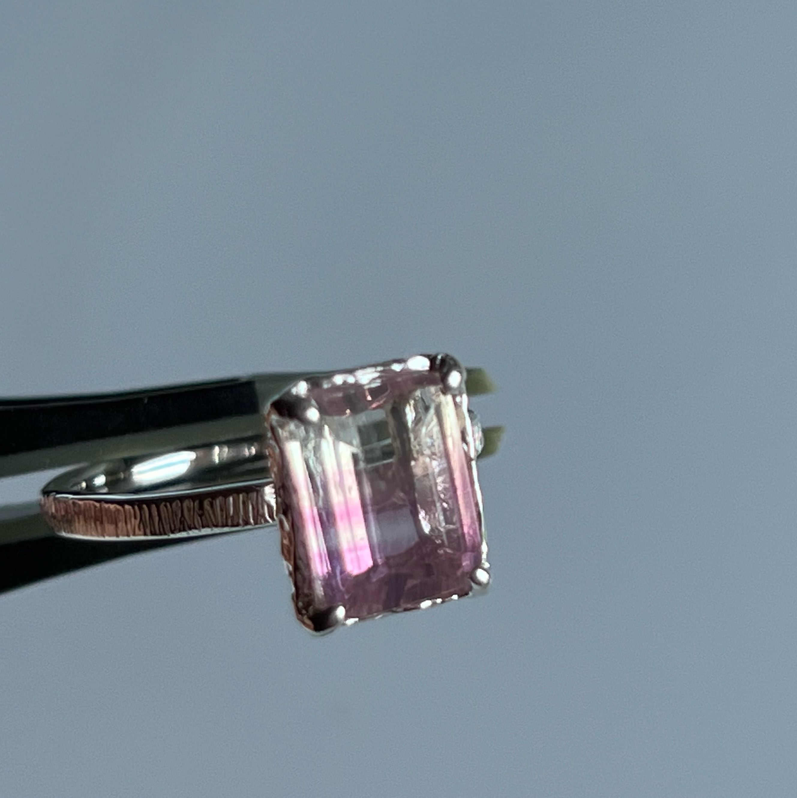 クリアから淡いグリーンに、パープルピンクのカラーバンドが美しく入ったフローライトを、Silver925で一点もののリングにお仕立てしました。
