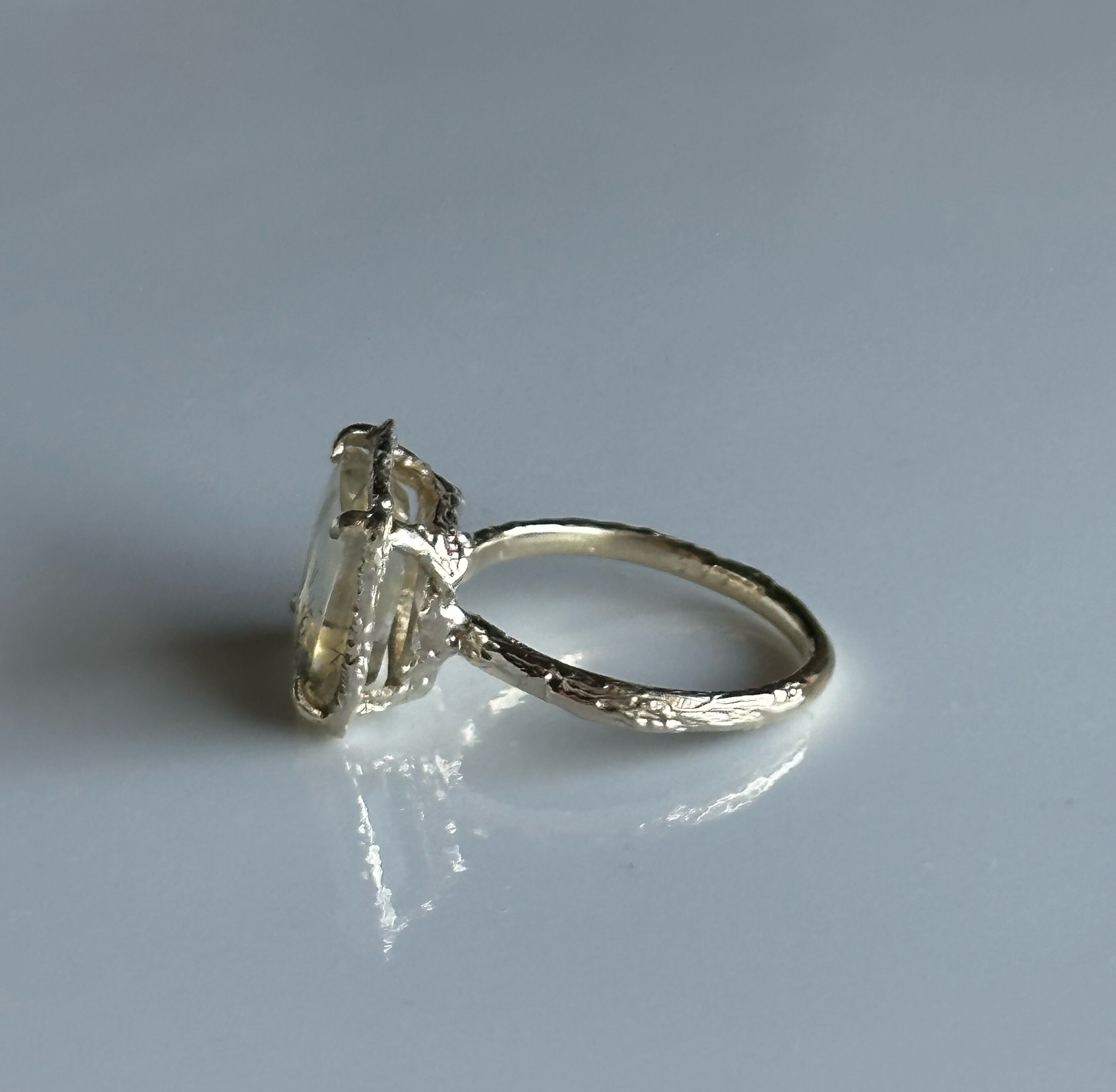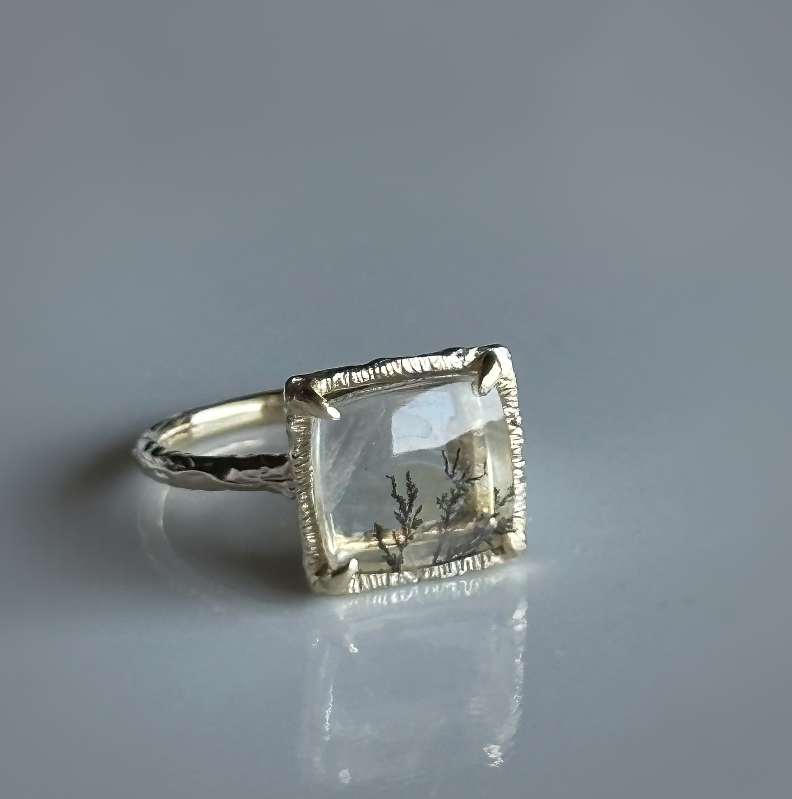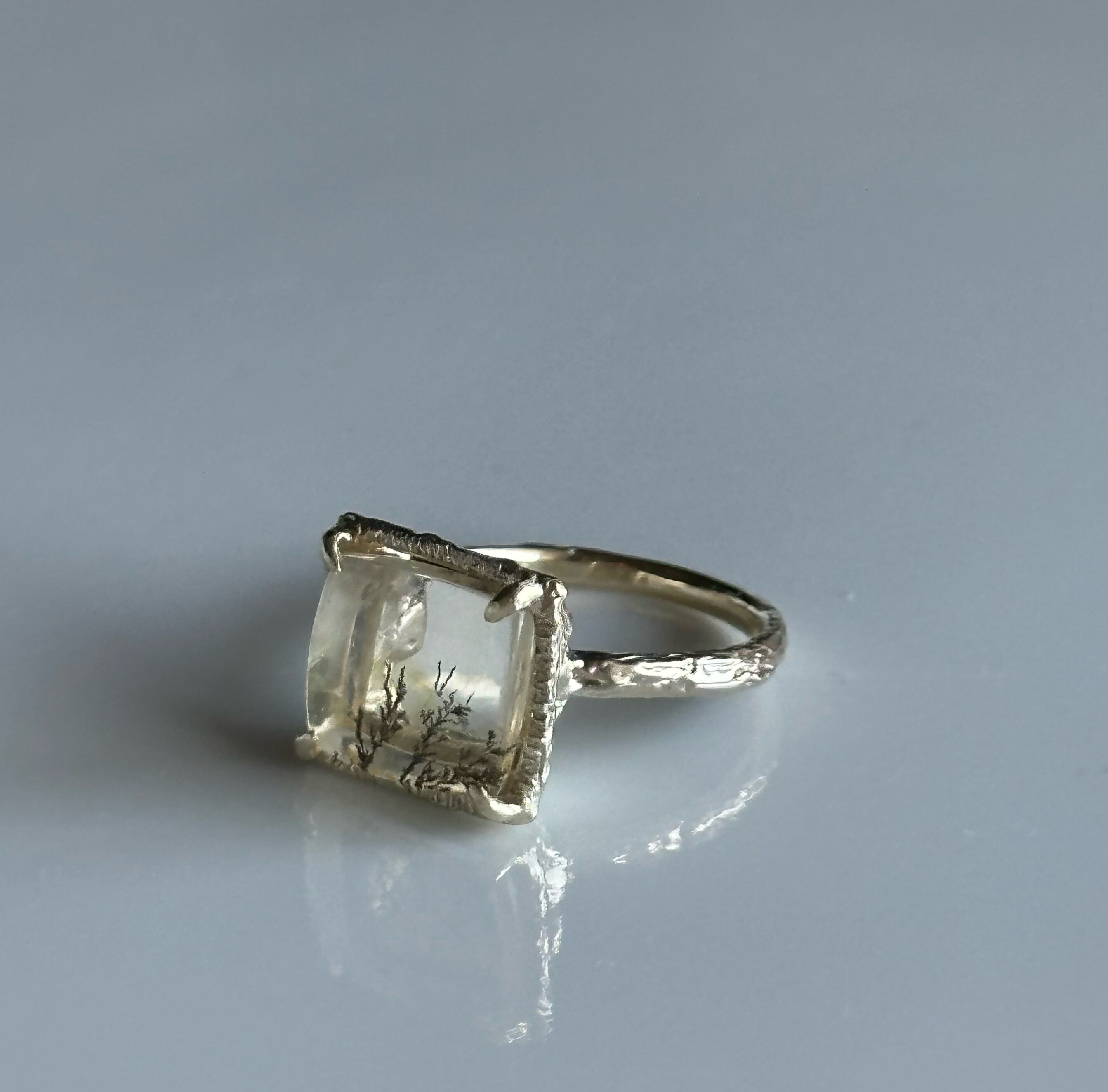 淡い色合いの繊細な絵画のようなデンドリティッククォーツを、K10で一点もののリングにお仕立てしました。